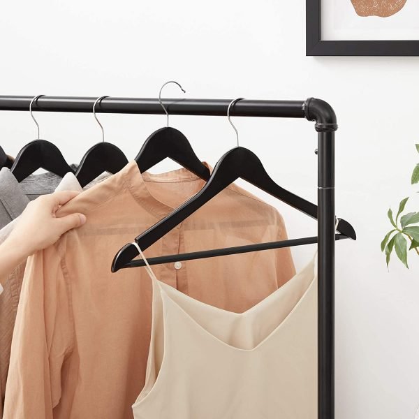 Inkepingen, broeklat en accessoirelat: Deze kledinghangers zijn voorzien van twee inkepingen, waardoor je eenvoudig kleding met dunne bandjes kunt ophangen, zoals hemdjes of jurkjes. Bovendien beschikken ze over een handige broeklat voor broeken, rokken of sjaals. Dit is niet alleen praktisch, maar vermindert ook de vouwlijnen die ontstaan wanneer kleding opgevouwen in de kast ligt.